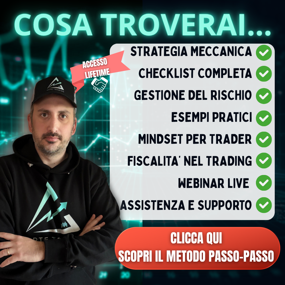 Scopri adesso il nostro NUOVO corso di Trading completo, che attraverso una strategia efficace e delle regole oggettive e meccaniche ti consentirà finalmente di raggiungere il successo che meriti sui mercati finanziari