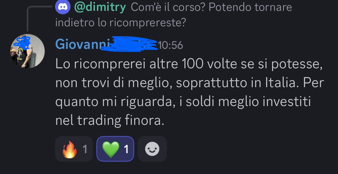 Ciò che mi ha colpito di più è il modo in cui riesce a trasmettere non solo la teoria, ma anche passione e la sicurezza necessaria per affrontare i mercati finanziari. Consiglio questo percorso a chiunque voglia avvicinarsi al trading con basi solide e ben strutturate